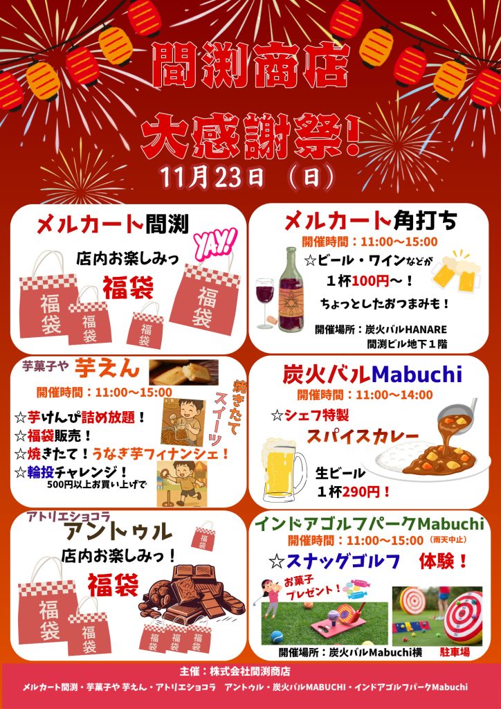 11月23日(日)に「間渕商店 大感謝祭」が開催されます。